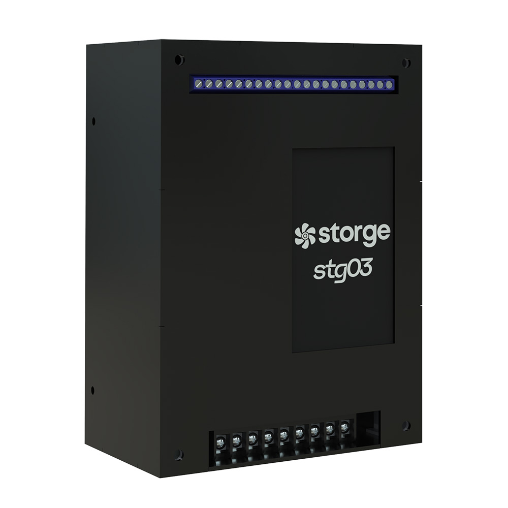 O stgDRV é a ponte entre os sensores do ecossistema stg e os seus equipamentos de ventilação, recebendo comandos sem fio para acionar ventiladores AC ou EC.